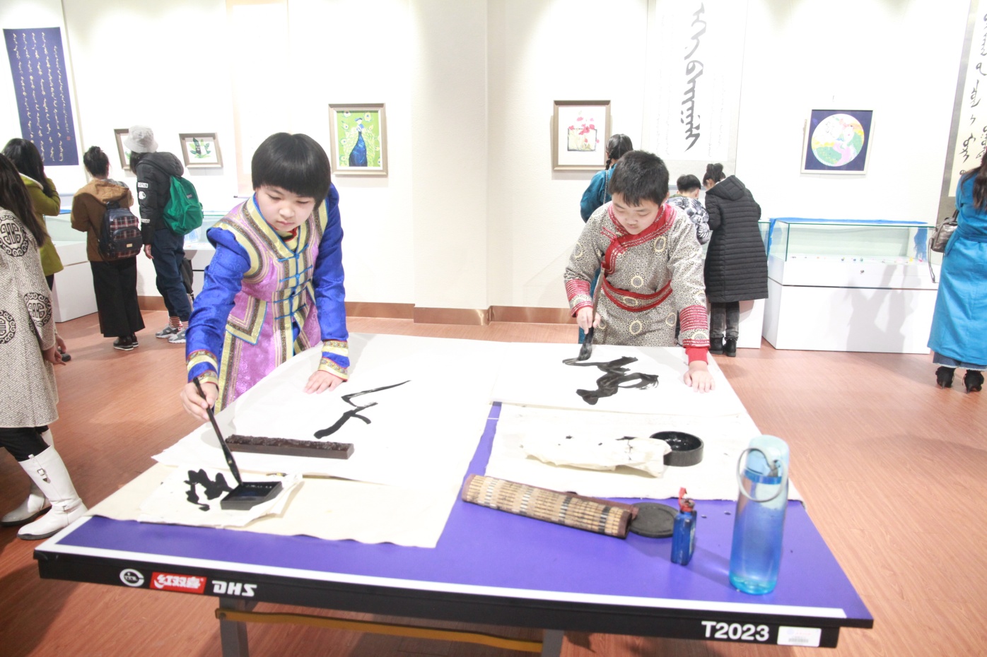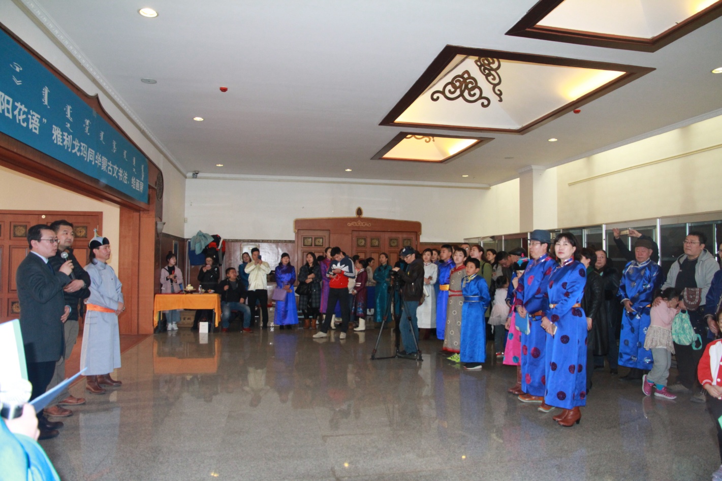 2018年3月17日上午10:00,由太阳集团tyc539与呼和浩特市民族实验小学联合主办,由民族博物馆承办的“太阳花语”蒙古文书画展在太阳成集团tyc539民族博物馆三楼展厅拉开序幕。呼和浩特民族实验小学学生家长、部分驻呼高校师生及书法爱好者近60人参加开幕式。