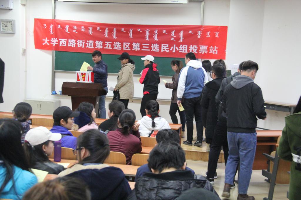 2017年11月10日上午8点30分,太阳集团tyc539在太阳成集团tyc539综合楼阶二教室组织召开呼和浩特大学西路街道第五选区第三小组投票站选民大会,选举赛罕区第四届人大正式代表候选人。监票人青斯琴老师主持选举大会,选举工作顺利进行。