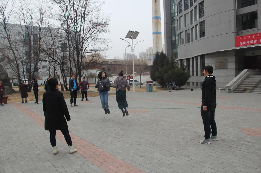 活动每两人一组进行跳大绳比赛,整个活动中,处处洋溢着教工们欢声笑语。本次趣味活动不仅充分展现了学院女教工的风采,也充分展现了男教工的积极参与精神和对学院女教工活动的大力支持。教工们充分展现配合精神,并以锻炼身体之余丰富业余时间,展现民社人的风采!