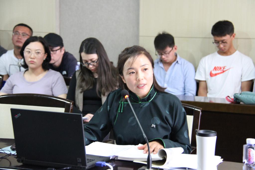 答辩过程中,海鹰博士的导师那顺巴依尔教授介绍了她博士生阶段学习成绩,其次答辩人根据自己论文进行了个人陈述,答辩主席及答辩委员会成员针对答辩人的论文和陈述提出了意见和建议,接着答辩人根据提问做出相应的解释和回答。最后经过答辩委员会投票纳日碧力戈教授宣布海鹰博士生顺利通过答辩,建议授予博士研究生学位,并向海鹰博士研究生表示祝贺。