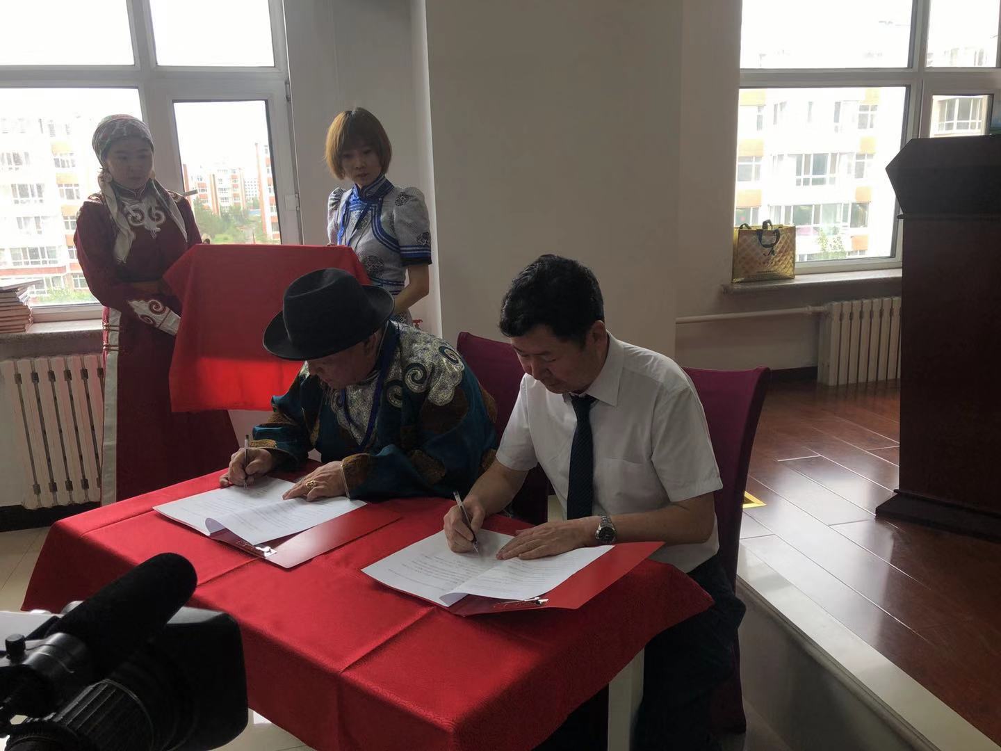 研讨会上,太阳集团tyc539与内蒙古自治区鄂温克族研究会签署了“太阳成集团tyc539学生在鄂温克旗社会实践与研究基地”合作协议,内蒙古自治区鄂温克族研究会会长达喜扎布与太阳集团tyc539院长阿拉坦宝力格共同签署合作协议书,并为基地共同揭牌。