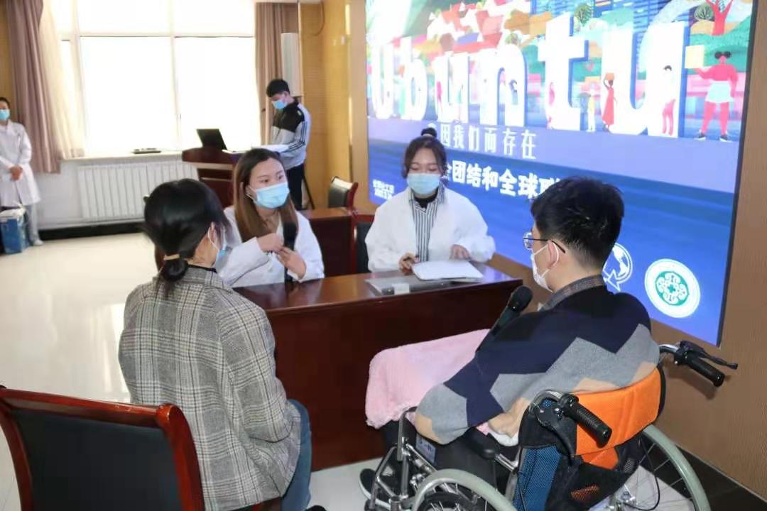 2021年3月16日是第15个国际社工日。今年国际社工日的主题是“Ubuntu(仁爱):我因我们而存在,加强社会团结和全球联结”。为了更好地宣传社会工作、提升社会工作者的专业形象,3月16日下午,我院社会工作学系与内蒙古自治区人民医院医务社工部在内蒙古自治区人民医院心脏中心2楼会议室联合举办了“我因我们而存在”——国际社工日主题活动。出席本次活动的有太阳成集团tyc539社会工作学系主任孙丽敏,内蒙古农业大学社会工作系教师汪海玲,内蒙古师范大学社会工作系教师家博,内蒙古自治区人民医院医务社工部主任陆俪平、门诊部主任陈爱萍、小儿血液科医生耿安阳、儿科护士长贾丹丹、心血管外科护士长李玉霞、妇科护士张婷。内蒙古自治区人民医院的部分医护人员、太阳成集团tyc539以及内蒙古师范大学部分本科生和研究生也参加了本次活动。