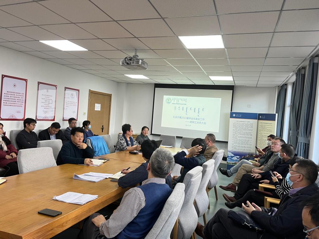 2021年12月6日下午16:00,我院召开2022届毕业生就业工作教职工大会,我院全体教师出席,党委书记王俊玲主持。
