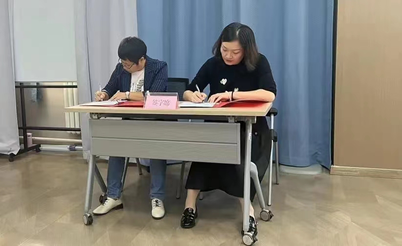 最后,呼和浩特市老牛儿童探索馆付德娟馆长与社会工作学系主任孙丽敏老师作为项目双方总负责人在项目合同书上签字。