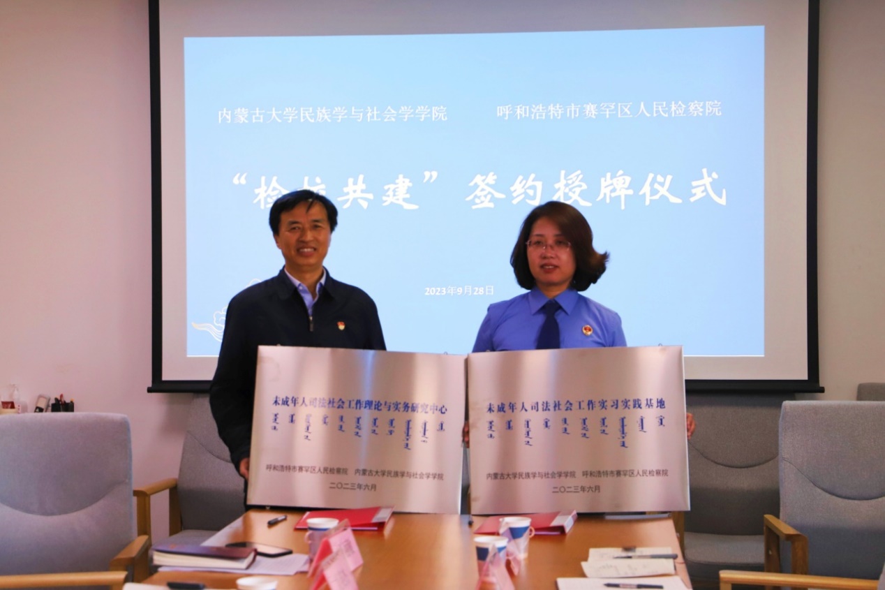 2023年9月28日上午,太阳集团tyc539与呼和浩特市赛罕区人民检察院在逸夫楼三楼会议室举办了“检校共建”签约授牌仪式。