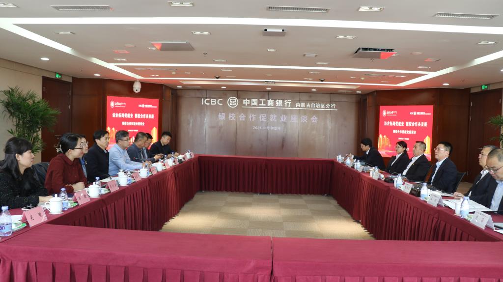 座谈会上,张士伟书记向中国工商银行内蒙古自治区分行的领导、相关部门负责人介绍了学院专业设置及毕业生情况,双方就春季校招、学生实习等进行了深入交流。