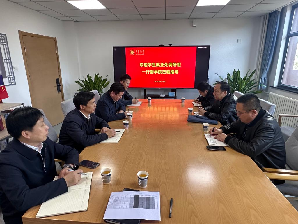 4月1日,学生就业处处长曹海鹰、副处长温海鹏一行来学院调研指导2025届毕业生就业工作。学院党委书记张士伟、院长阿拉坦宝力格、副书记白胡日查、副院长杨常宝接待并汇报交流相关情况。