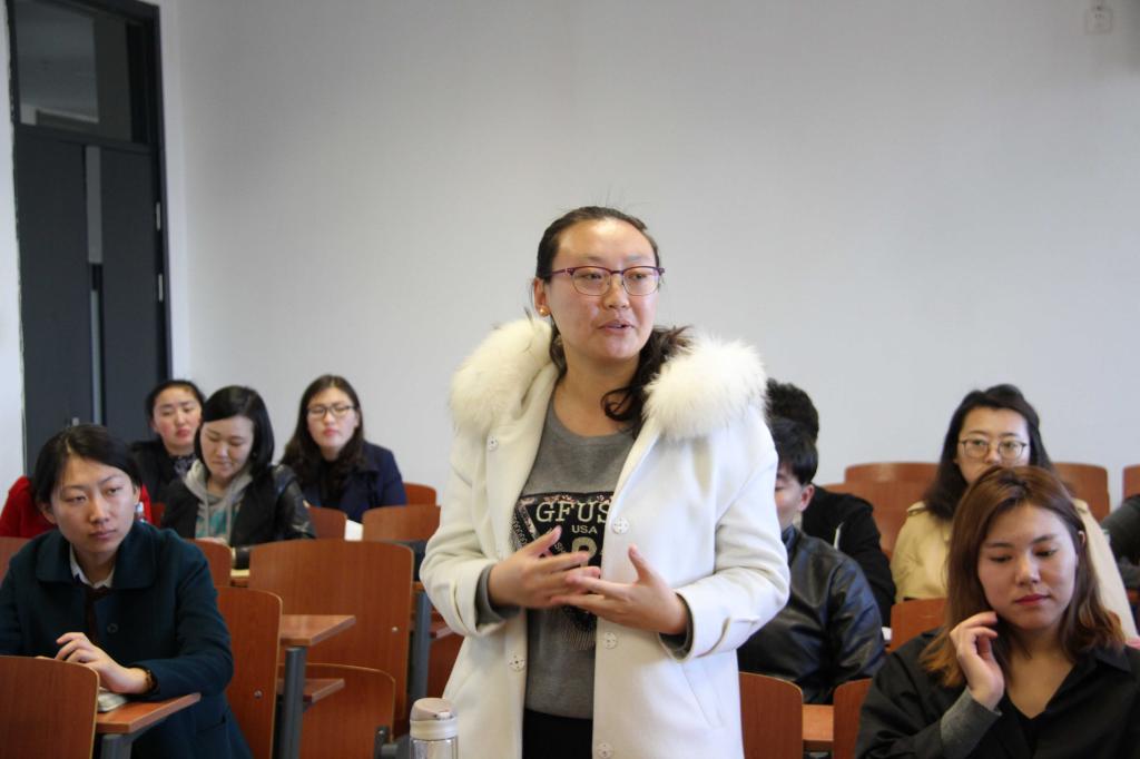 王红艳老师围绕内蒙古农地确权的社会影响与在座师生进行讨论,首先阐述了关于“农地确权”,正反两方的观点;再次,结合详实的调研资料和数据分析了与农地确权相关的主体所承担的后果和得到了实惠;最后王红艳老师对她关于农地确权的课题进展和成果进行总结。