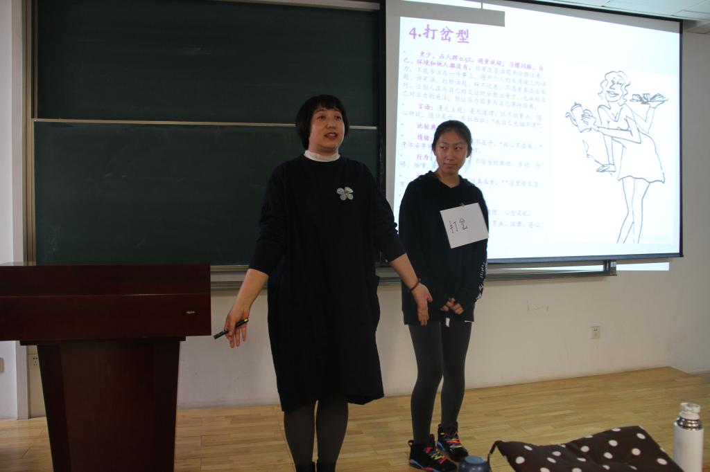 本次讲座进行过程中吕霄红老师介绍了亲密关系中的五种沟通方式、家庭图、冰山图等萨提亚治疗方式,并且在讲座中,老师还组织学生,进行了五种沟通方式的演示和学生们之间的互动,使得本次讲座联系实际,生动形象。