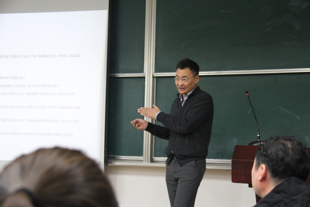 2017年11月6日至10日,在太阳成集团tyc539北校区研究生楼,蒙古国国立大学教授、德国马普社会人类学研究所客座研究员拉哈巴苏仁·孟和额尔敦教授应太阳集团tyc539的邀请,分别做了主题为“欧亚早期政治秩序:帝国统一与等级单位制”、“中世纪蒙古人关于人民、国家与帝国观念”、“1640年法典:内亚版的西伐利亚和约”、“清代蒙古社会变迁”和“蒙古国多族群由来:知识、权利与认同”的学术讲座。