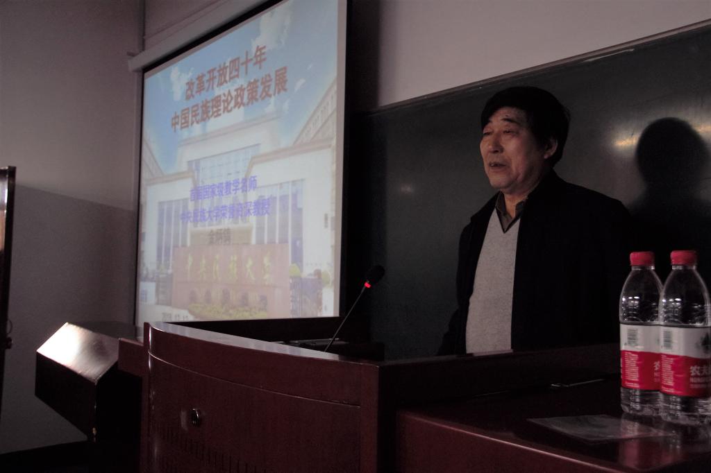 2018年12月11日,我院特邀中央民族大学金炳皓教授至我院进行了题为《改革开放四十年中国民族理论政策发展》的学术讲座。金老师是首届国家级教学名师,中央民族大学荣誉资深教授、博士生导师。金老师系统梳理了改革开放四十年以来中国民族理论政策的发展。他指出邓小平开创了中国特色社会主义民族理论,江泽民、胡锦涛在邓小平的基础上丰富发展了中国特色社会主义民族理论,习近平总书记赋予了中国特色社会主义民族理论新的内涵,形成新时代中国特色社会主义民族理论。金老师完成自己的理论陈述后与我院师生进行了热烈地讨论,并回答了学生提出的相关问题。