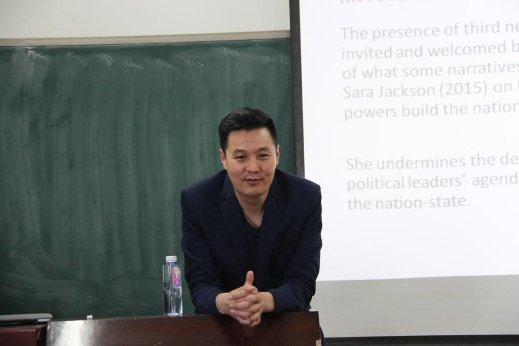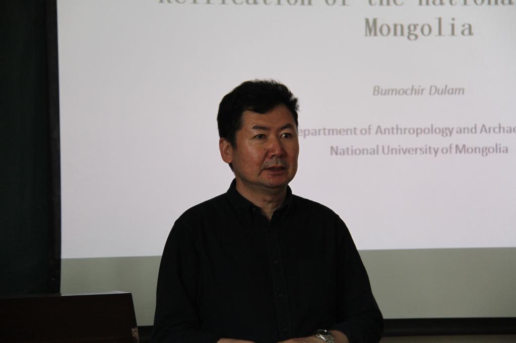 2019年5月27至5月31日在太阳成集团tyc539北校区,英国剑桥大学人类学系博士、蒙古国国立大学人类学系系主任、教授Bumochir Dulam来我院进行为期5天的系列学术讲座。讲座主题分别为“蒙古国国民经济的物化与市场的兴起”,“蒙古国国家发展与资源开发”,“故乡、环境运动和民族”,“发展、影响评估及文化传承”,“国家的世俗化和再物化”。讲座语言为蒙古语、英语。本次讲座由太阳集团tyc539阿拉坦宝力格教授主持。
