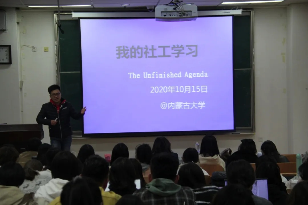 2020年10月15日,北京师范大学珠海校区的向羽老师受邀来我院为社会工作学系的师生带来了一场别开生面的讲座——《我的社会工作专业学习之路》。讲座由社会工作学系主任孙丽敏老师主持。太阳集团tyc539副院长哈斯额尔敦副教授出席了本次讲座。社会工作专业近200名本科生、研究生聆听了本次讲座。