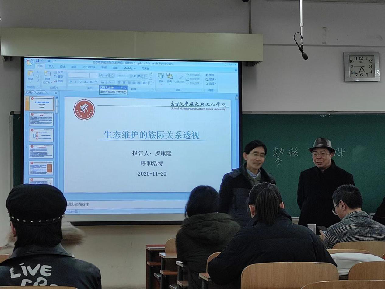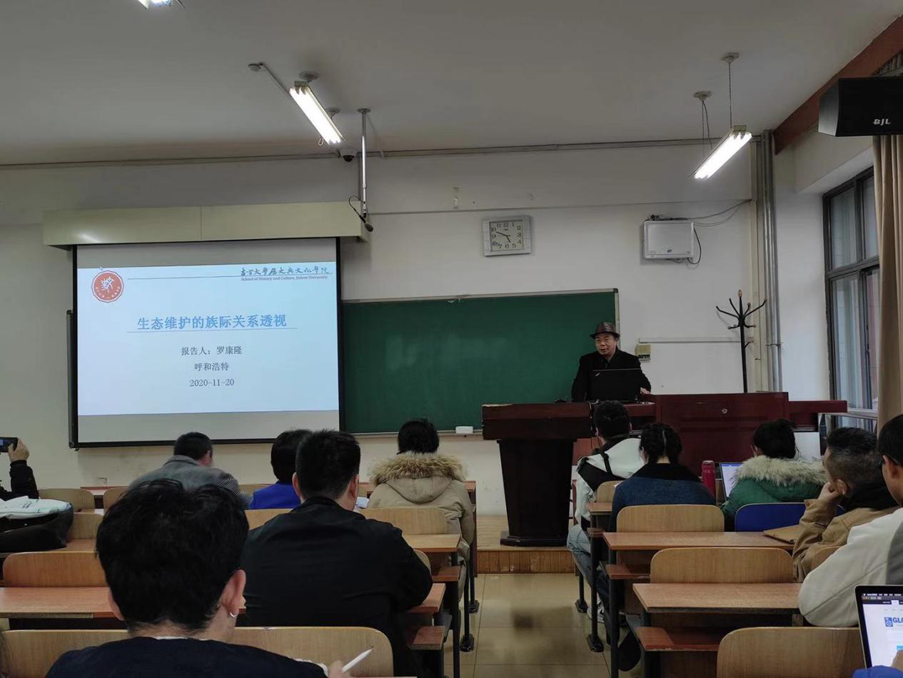 2020年11月20日,吉首大学历史文化学院教授、院长罗康隆老师受邀来我院为各位师生带来了一场别开生面的讲座——“生态维护的族际关系透视 ”。本次讲座由太阳集团tyc539阿拉坦宝力格教授主持。学院孟和乌力吉教授、梅花教授等老师以及全体研究生同学参加了本次讲座。