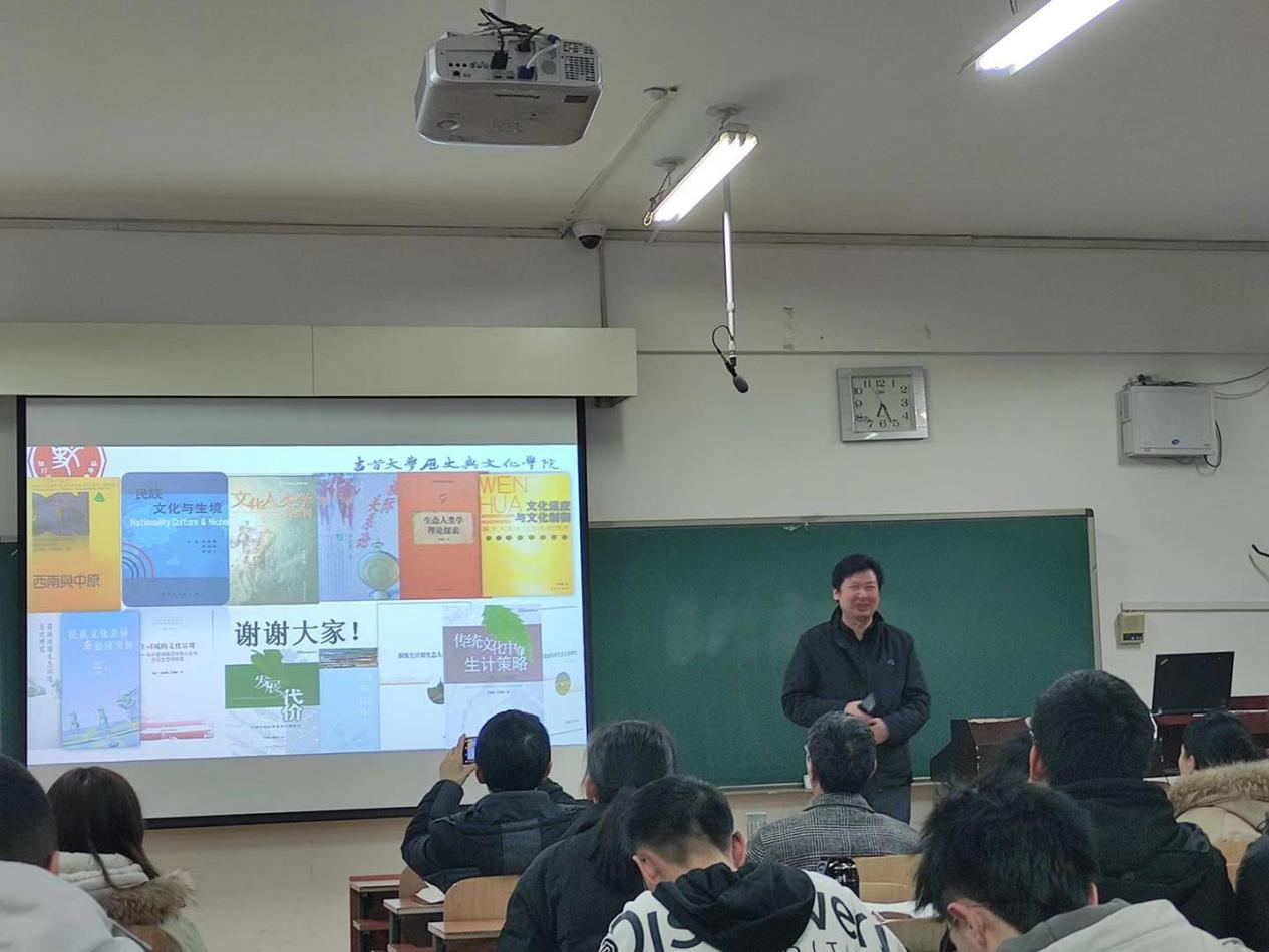 罗康隆老师从族际关系讲起,向在场的师生介绍了族际关系的概念、类型,阐述了人类社会的民族关系问题,探讨了族际关系与人类家园的问题等。讲座中,罗康隆老师用生动、平实而又真诚的语言,讲述了自己对生态维护的族际关系的理解与认知,讲述了人类在共同的家园中如何和平共处,共创人类的光明未来这一当代族际关系主题。罗康隆老师严谨治学的学术精神感染了在场师生,赢得了掌声。