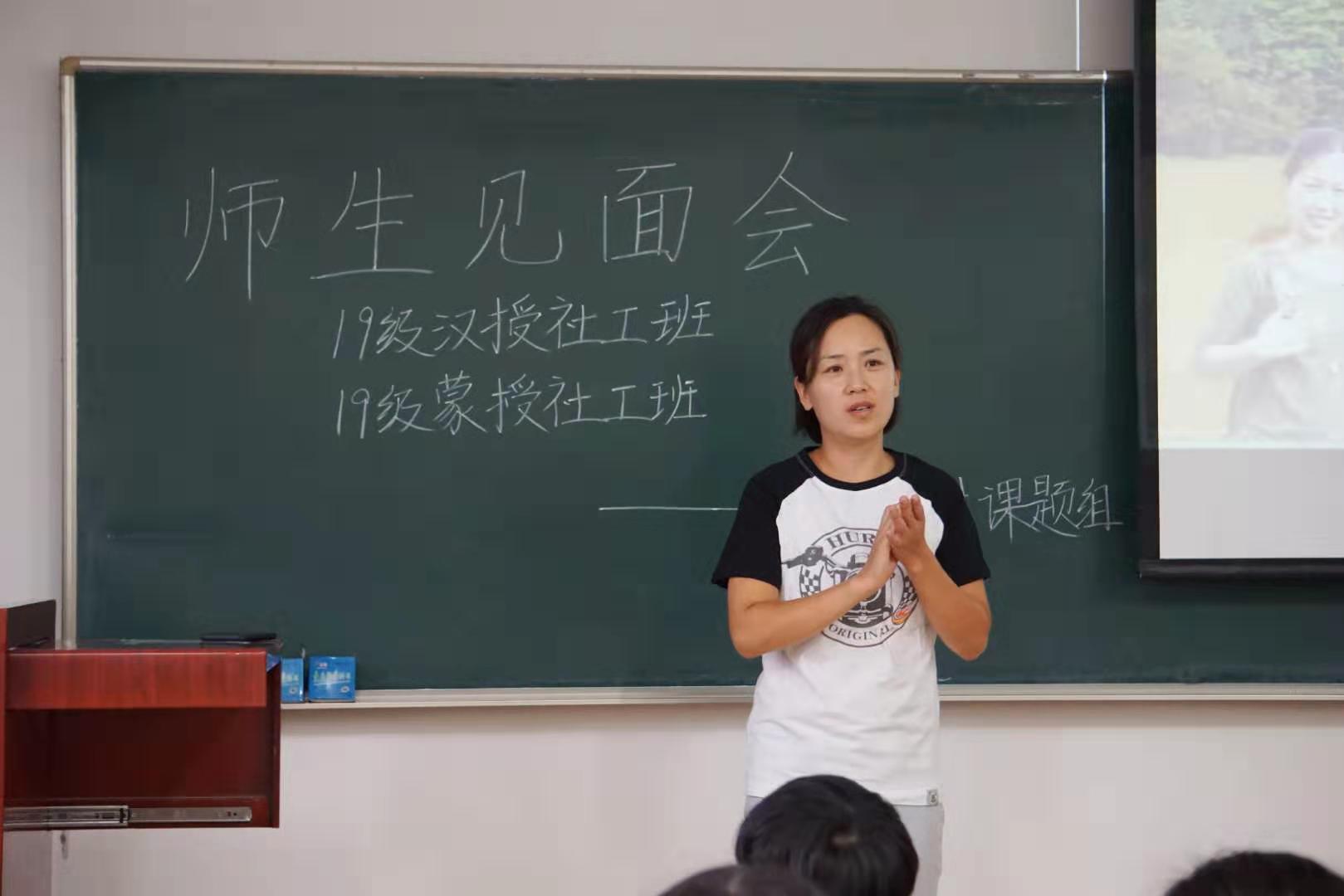 9月12日下午16点30,太阳集团tyc5392019级社会工作专业师生见面会于研楼303教室举行。本次师生见面会由社会工作学系新生研讨课课题组筹办,2019级蒙授及汉授社会工作专业班主任赵美荣、苏日娜老师主持,学院党总支书记王俊玲、各任课老师、班主任出席。目的是让新生们进一步了解学校的教学、管理和学生就业等情况,为他们实现人生梦想增加自信。