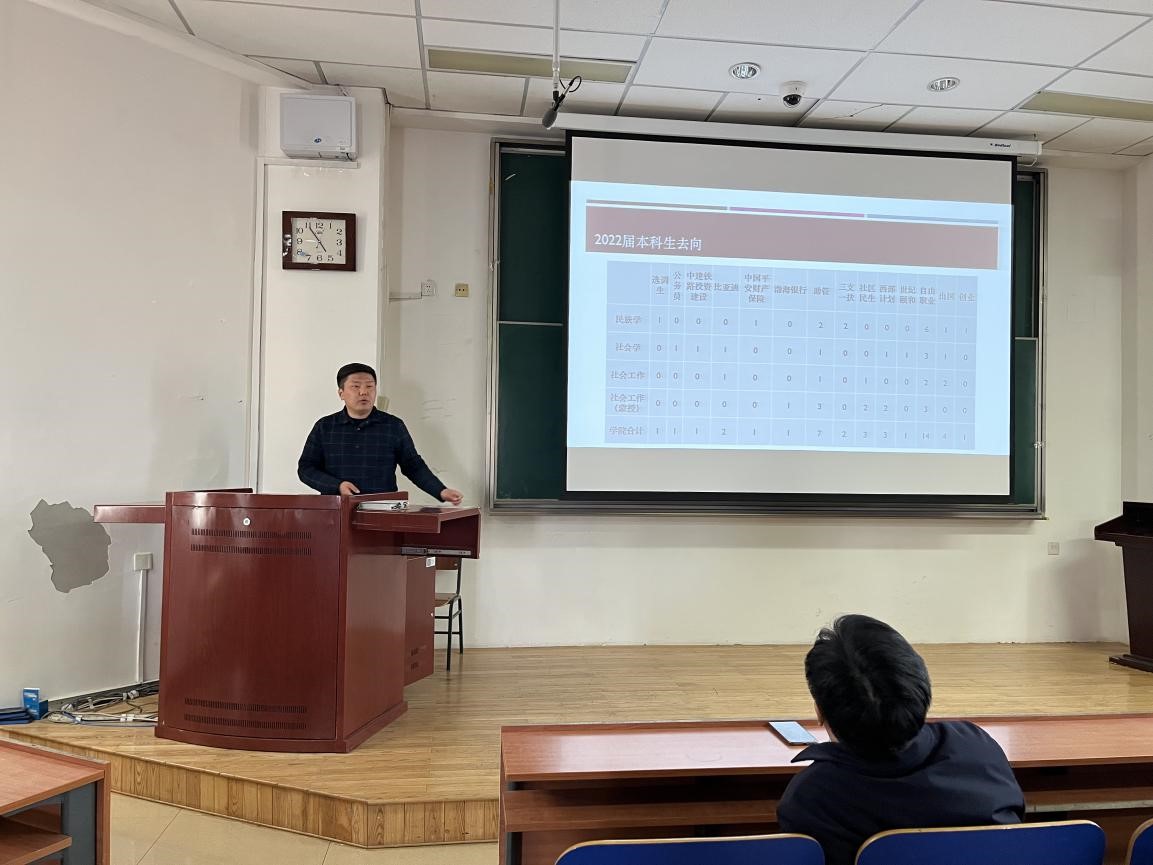 团总支副书记苏日太老师,对2021、2022届毕业生初次就业去向和到目前的就业情况进行分析展示。再跟大家分享了往届学生就业、职业发展案例。建议大家就业要从实际出发,脚踏实地,先进入工作岗位锻炼。
